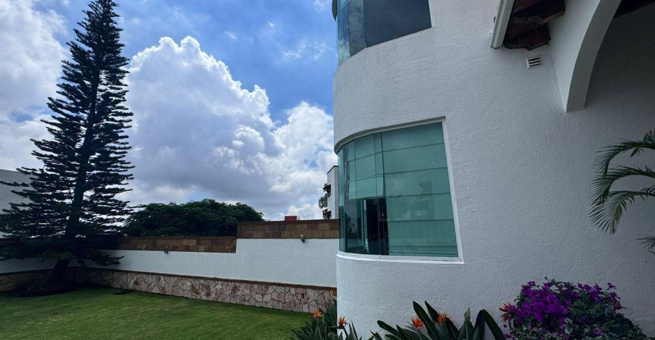 Hermosa casa dentro de exclusivo fraccionamiento con estricta vigilancia al norte de Cuernavaca, frente a hermosas áreas comunes, con acabados de primera, 3 recámaras con closets y baños completo, la principal en planta baja, sala con doble altura, comedor con bóveda catalana y vista al jardín, cocina con acabados de granito y equipada con lavavajillas y estufa, antecomedor, amplio jardín con sistema de riego por aspersión, terraza y jacuzzi, cuarto de servicio, cuarto de lavado, cochera para 2 autos con portón eléctrico