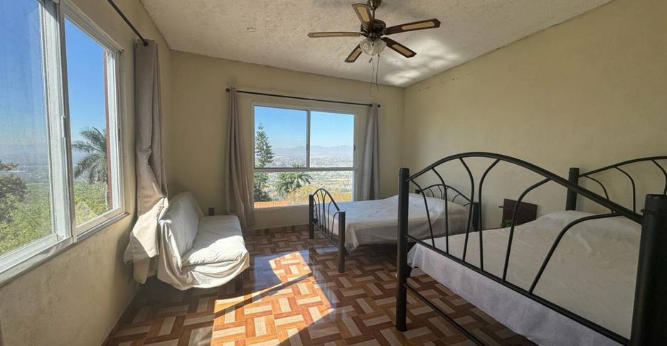 Hermosa propiedad con vistas al valle de Cuernavaca dentro de fraccionamiento con estricta vigilancia a orillas del club de golf Hacienda San Gaspar, Jiutepec, Morelos, con sala, comedor, cocina con pequeña cocineta, cuarto tipo cine con proyector de video y sillones reclinables, cuarto de juegos amplio, tres recámaras con baños completos, medio baño de visitas, alberca de 8.5 x 4 metros con chapoteadero de 2 x 2 metros y espejo de agua con caldera, vestidor con regadera en área de alberca, áreas verdes, dos calentadores solares para regaderas, cisterna de 11,000 litros, cochera para un vehículo y tres en exterior.