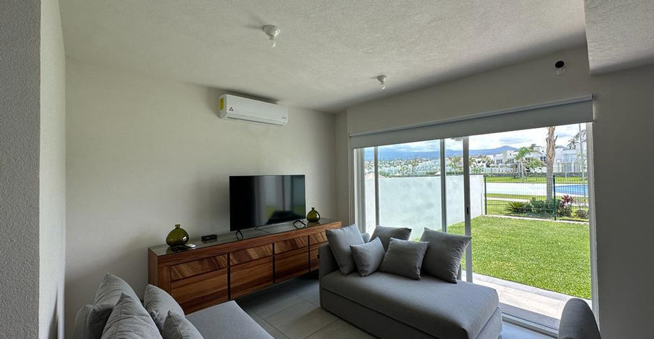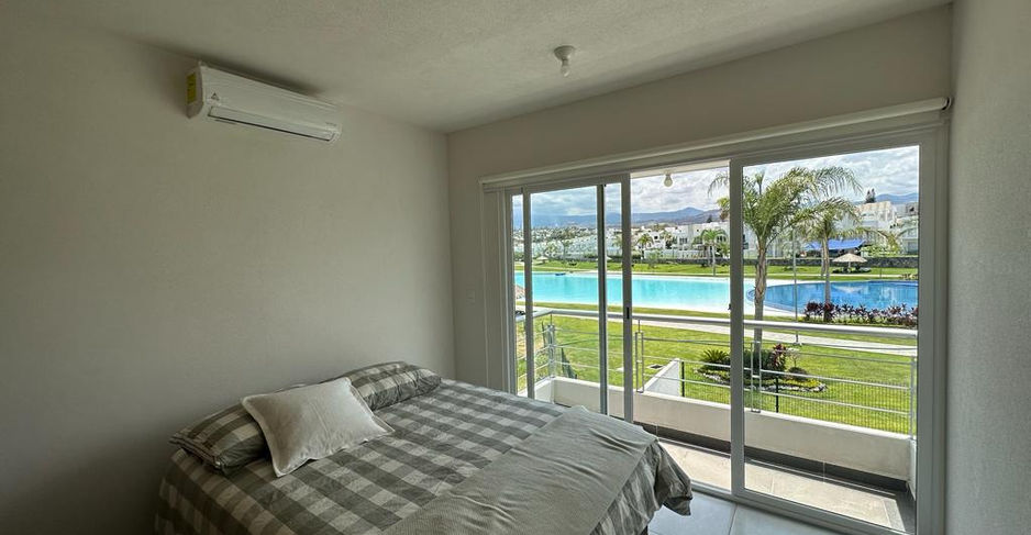 Venta de Hermosa casa con Lago Artificial (Área común) con seguridad privada en fraccionamiento cascadas de Cocoyoc, La propiedad cuenta con 3 Recamaras con closets en planta alta, la recamara principal con baño completo, Estancia-Sala, Comedor, Cocina integral de granito con parrilla extractor, horno de gas y muebles de cocina, cancelería de vidrio templado, piso de porcelanato en toda la casa y 5 aires acondicionados, la casa se ubica frente al área común que cuenta con un lago artificial, 2 albercas, 2 canchas de paddle y 1 de tenis, palapas, salas de estar, Gimnasio y salón de eventos,